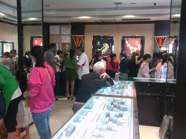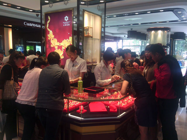 中国黄金店七夕情人节店内购物的顾客