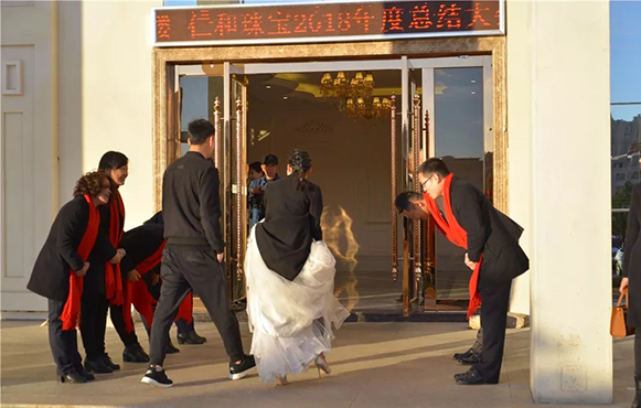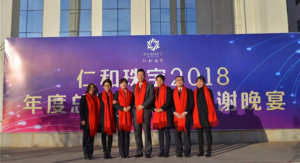 人事部经理贺艳女士汇报仁和珠宝2018年度企业文化建设回顾工作: 仁和的企业文化一直秉承:从感恩做起,从“快乐工作、快乐生活”做起,我们也在一直践行这个目标与理念,把我们仁和特有的企业文化做到实处、深入每一位消费者的心中。2019我们将迎接更大的挑战,任重而道远,但是我们坚信在许总的带领以及各界同仁、家人们的支持下,仁和珠宝的明天必将更加辉煌。
